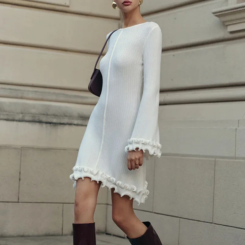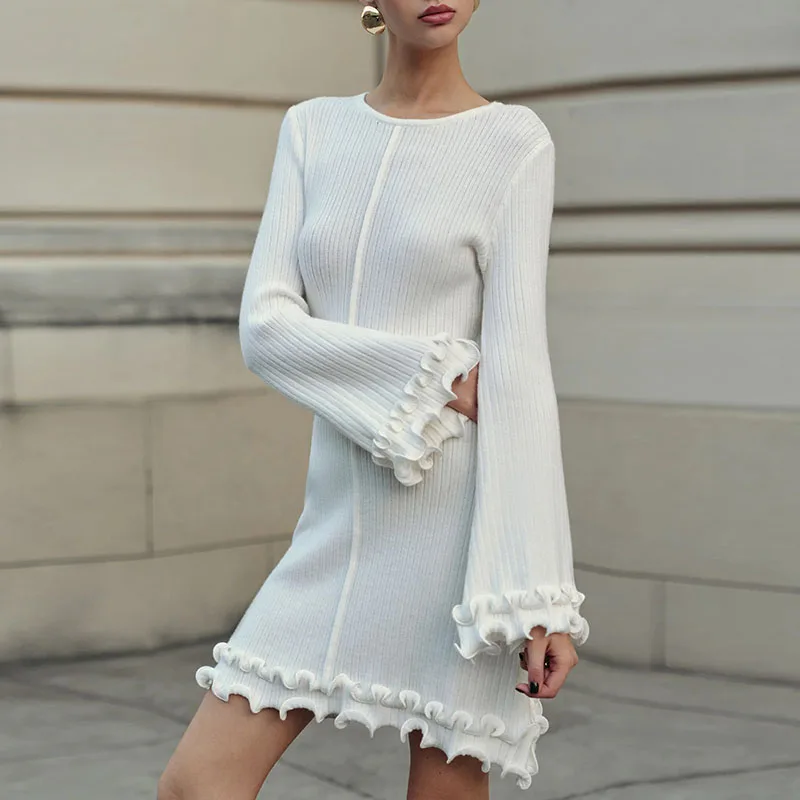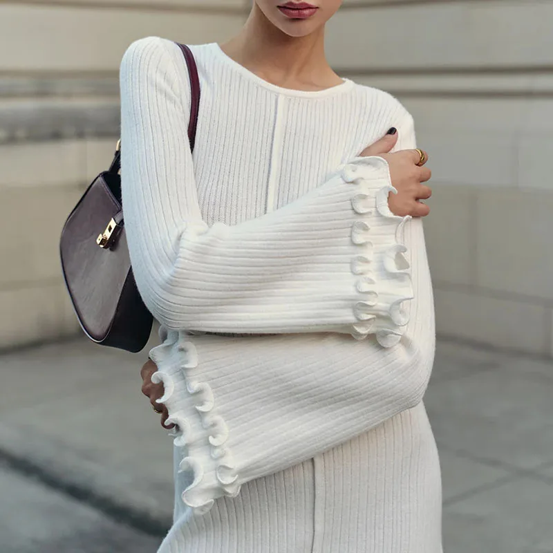 Elegant Ribbed Midi Dress with Flared Sleeves for Women