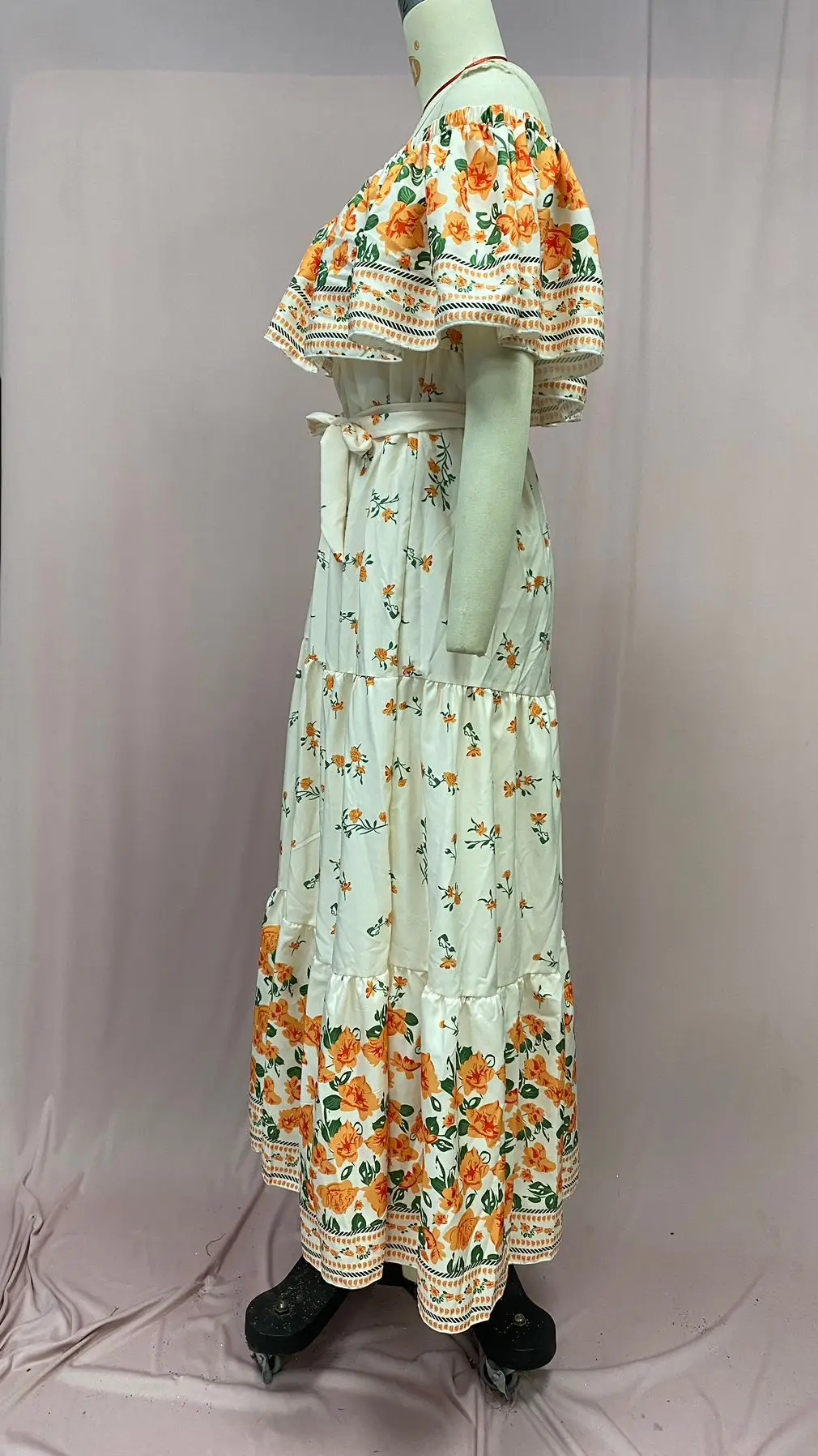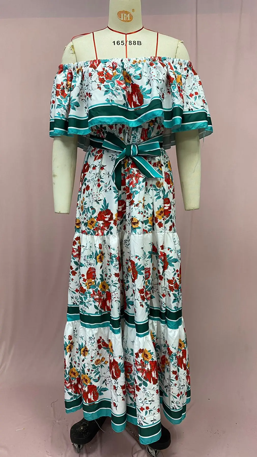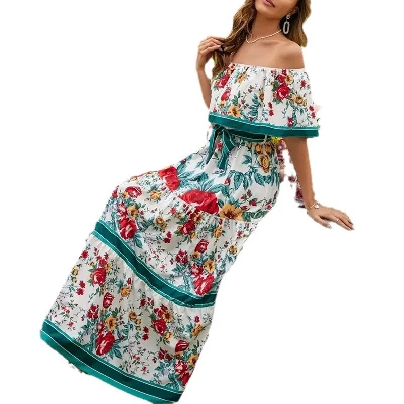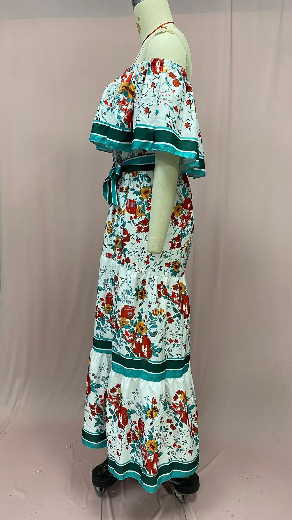 Boho Off-Shoulder Ruffle Floral Print Maxi Floral Dress