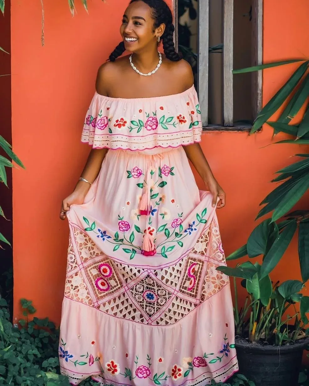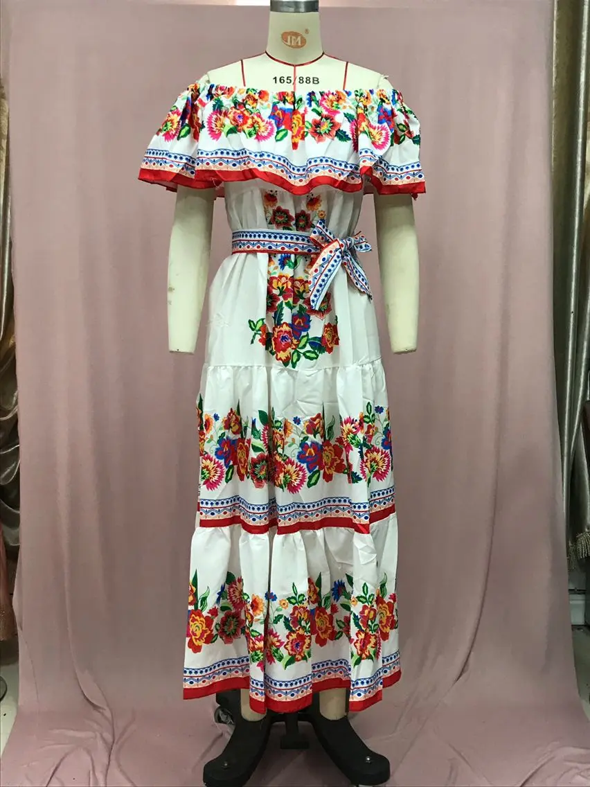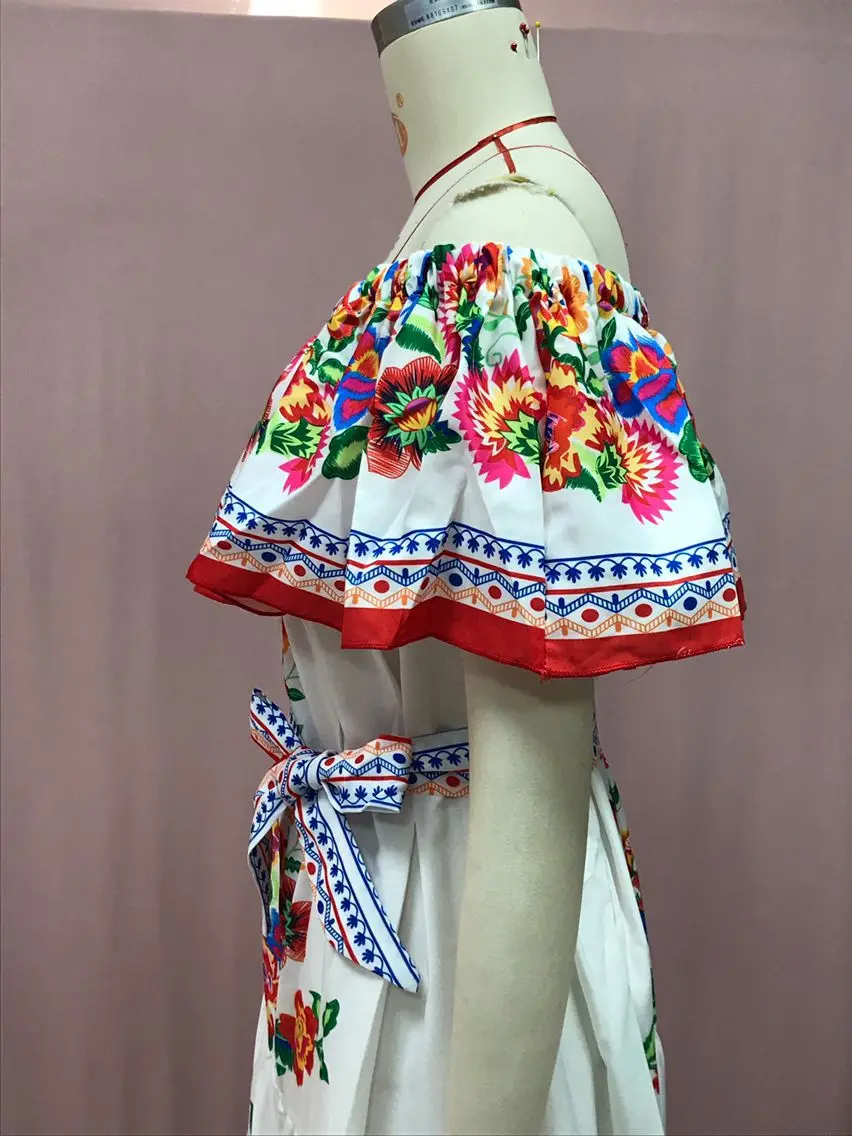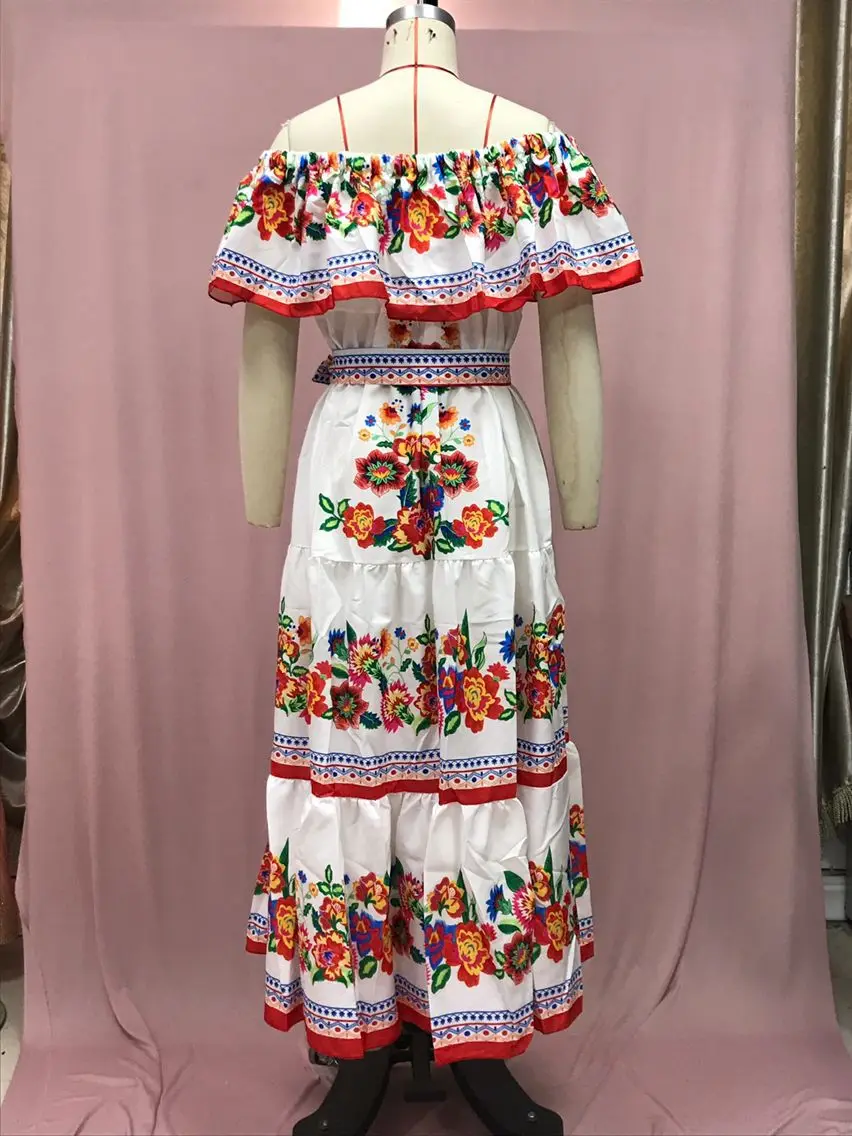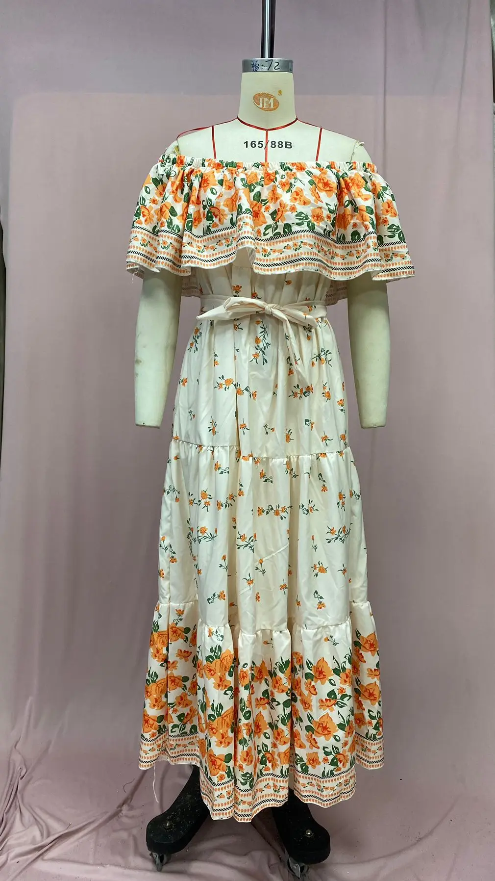 Boho Off-Shoulder Ruffle Floral Print Maxi Floral Dress