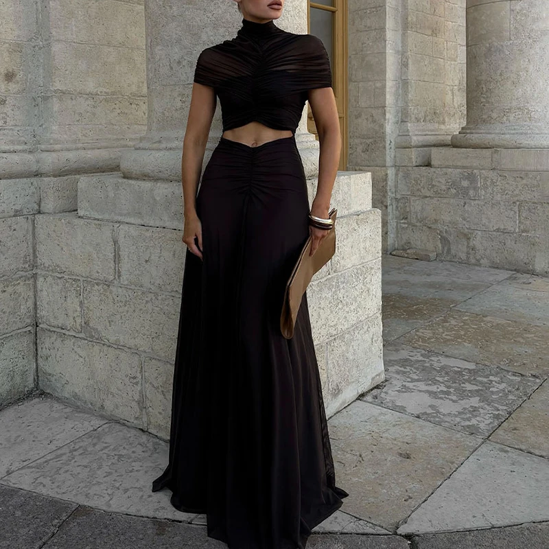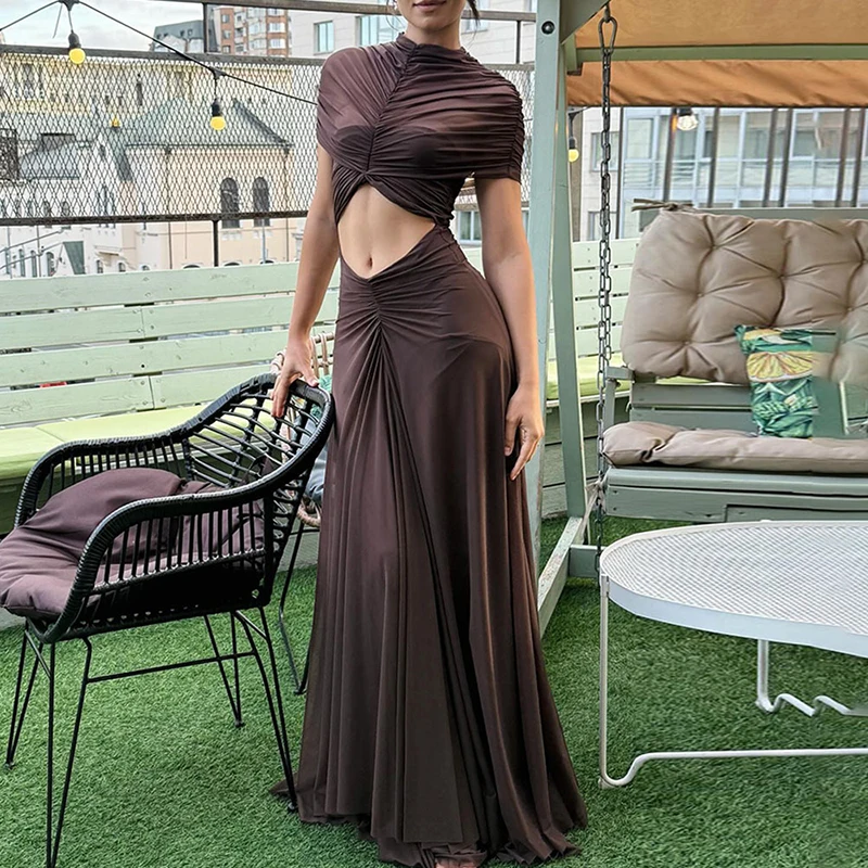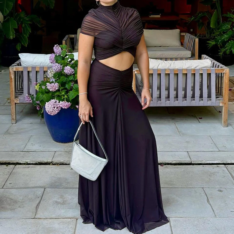 Elegant Cape Sleeve Solid Color Dress for Evening Events