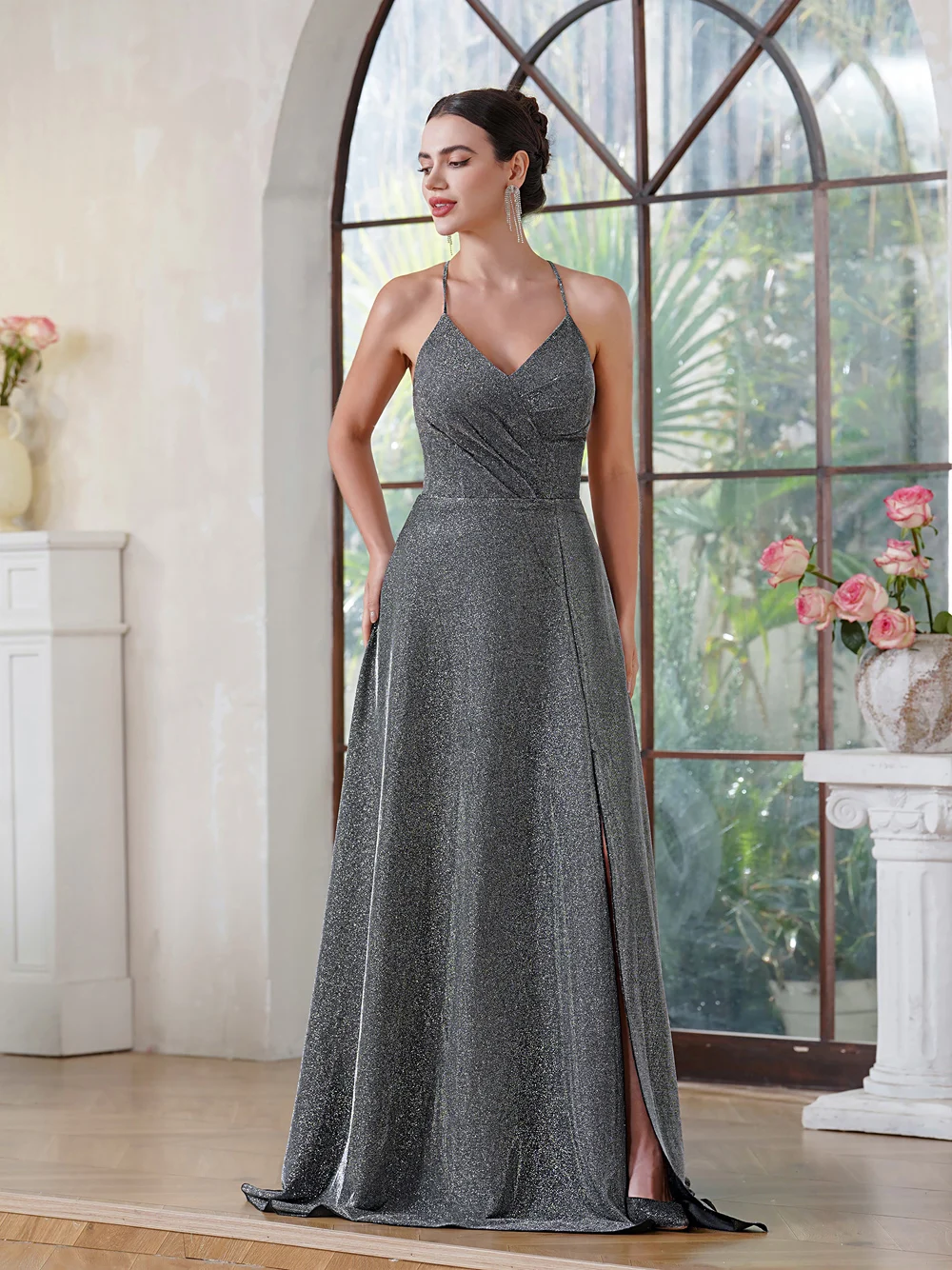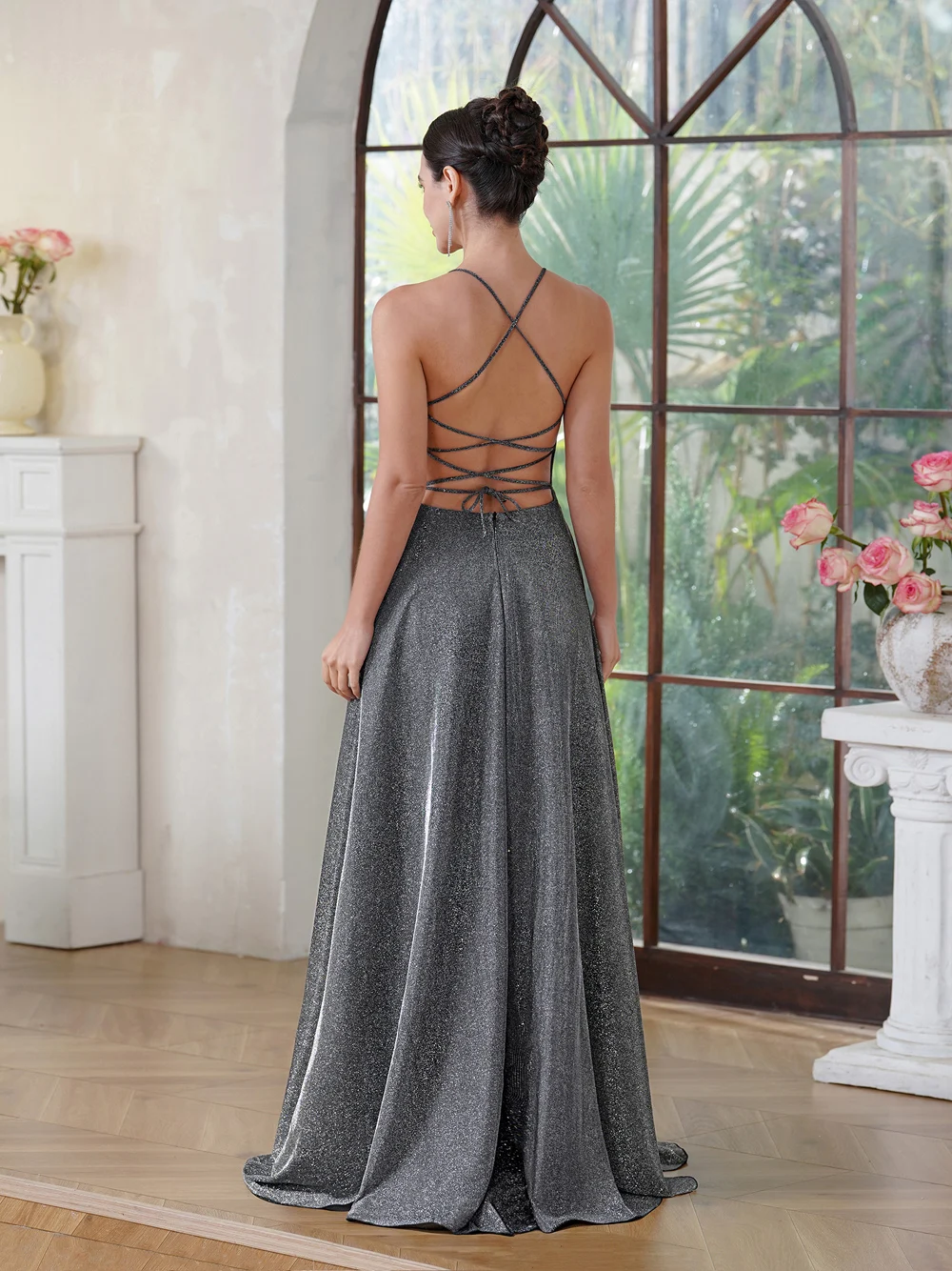 Elegant A-Line High Slit Evening Dress with Spaghetti Straps
