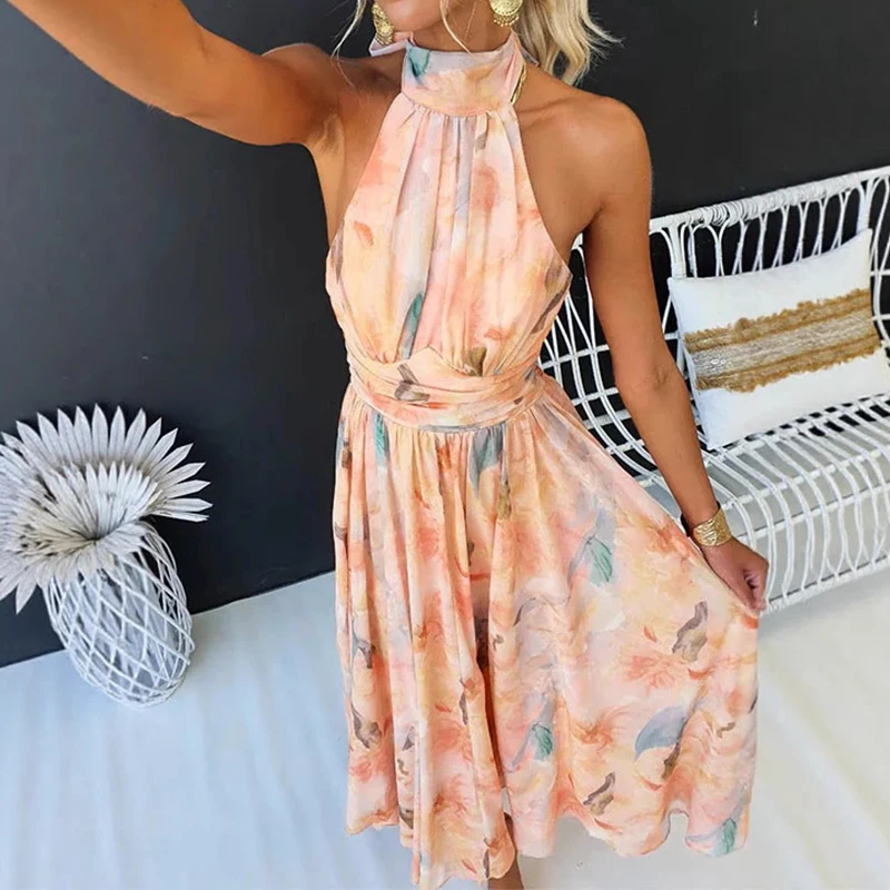 Elegant Halter Backless Maxi Dress for Beach Vacations