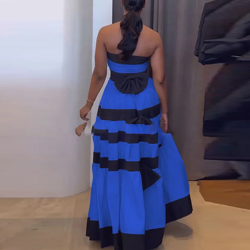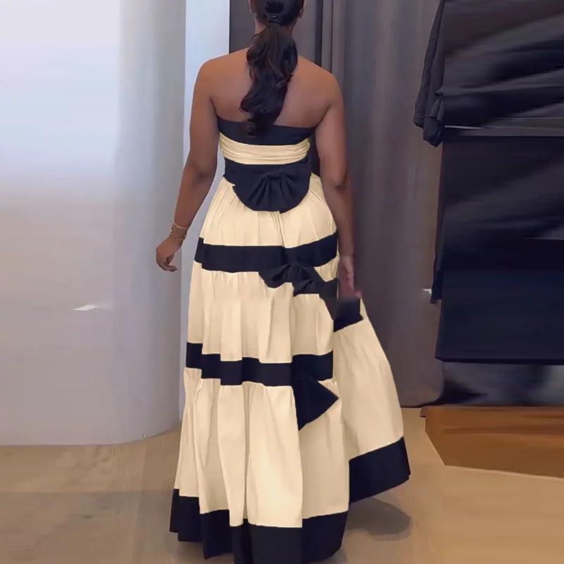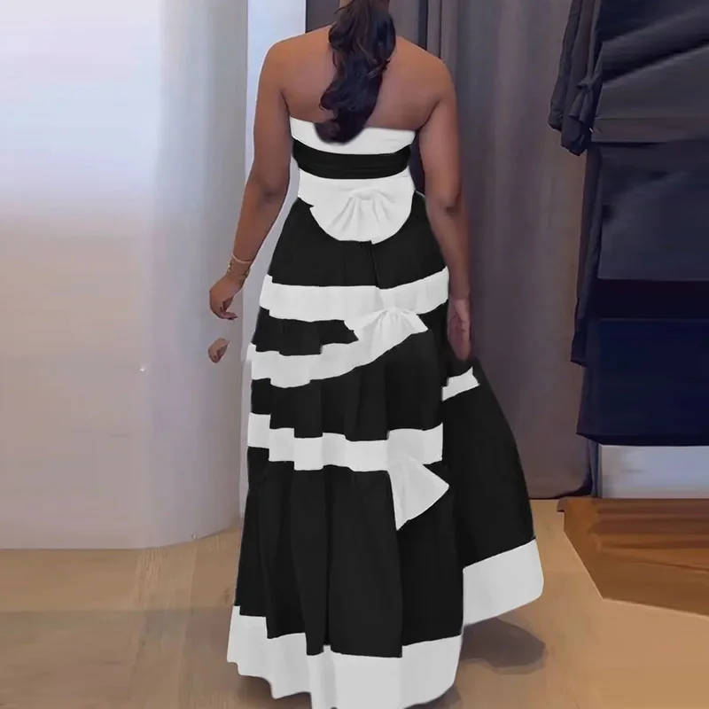 Elegant Strapless Striped Evening Dress for Stylish Parties