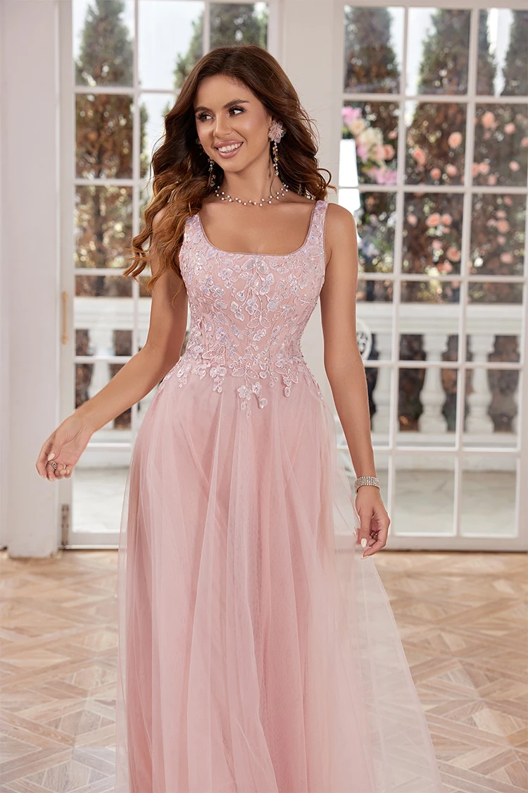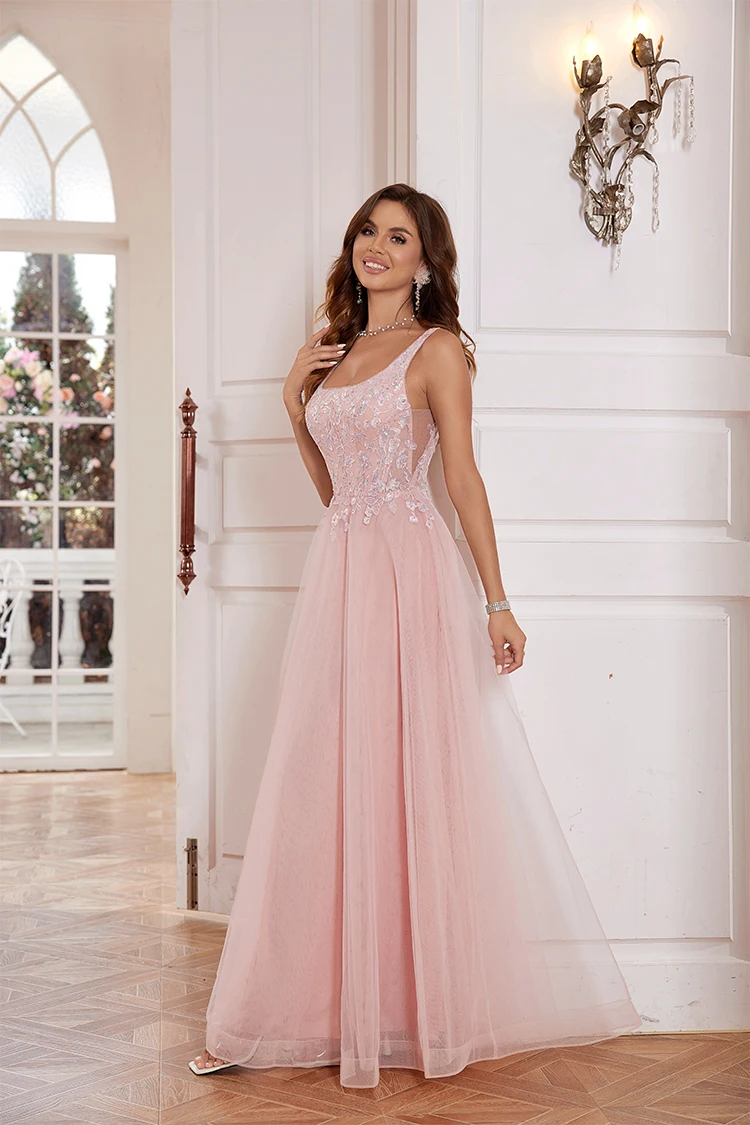 Elegant Tulle Beaded Evening Dress for Formal Occasions