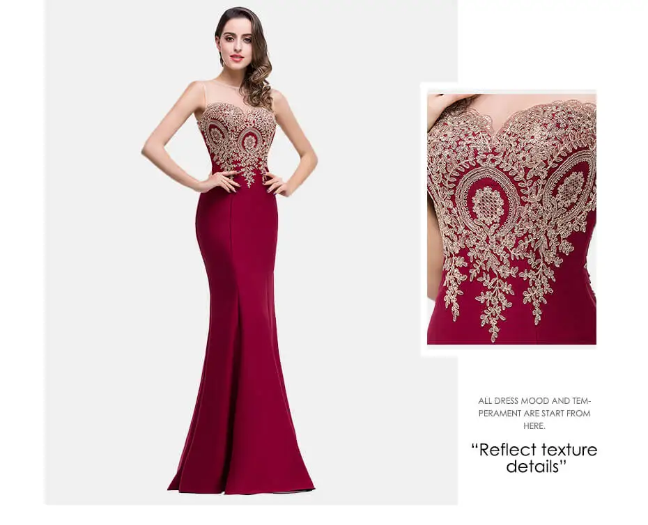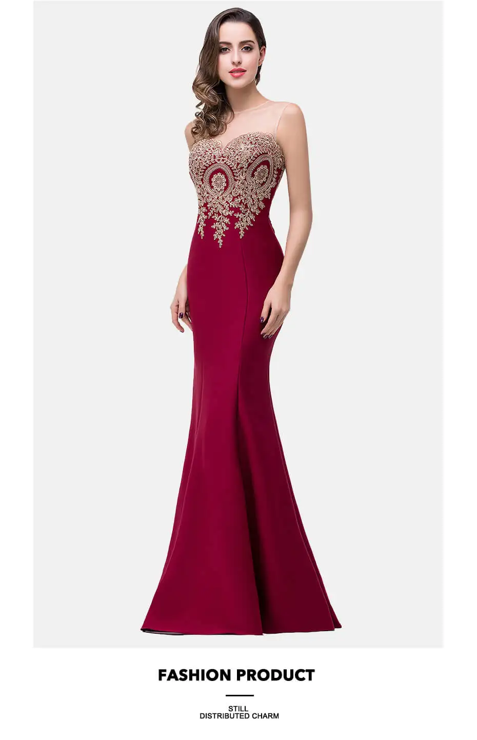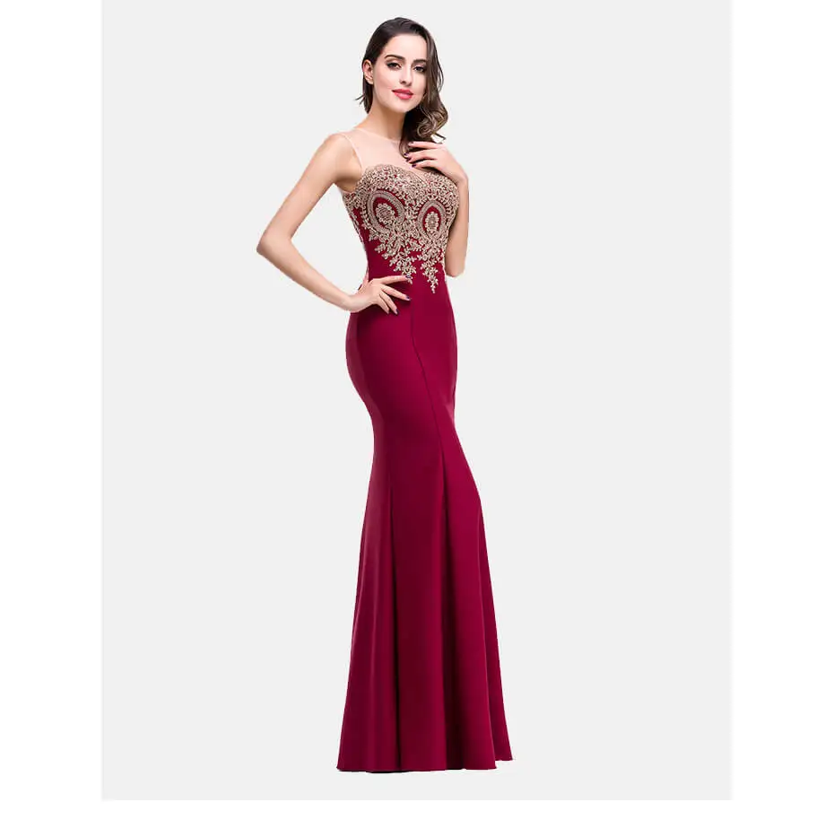 Elegant Red Maxi Dress with Gold Appliques for Formal Events