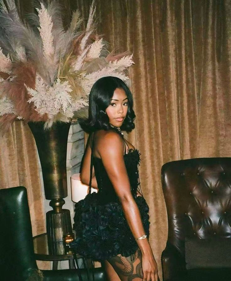 Sexy Black Satin Rose Halter Cocktail Dress Sheath Short Birthday Dress Homecoming Dress S376