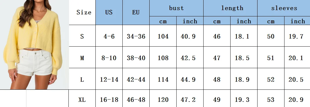 Solid Lantern Sleeve Button Down Knit Cardigan