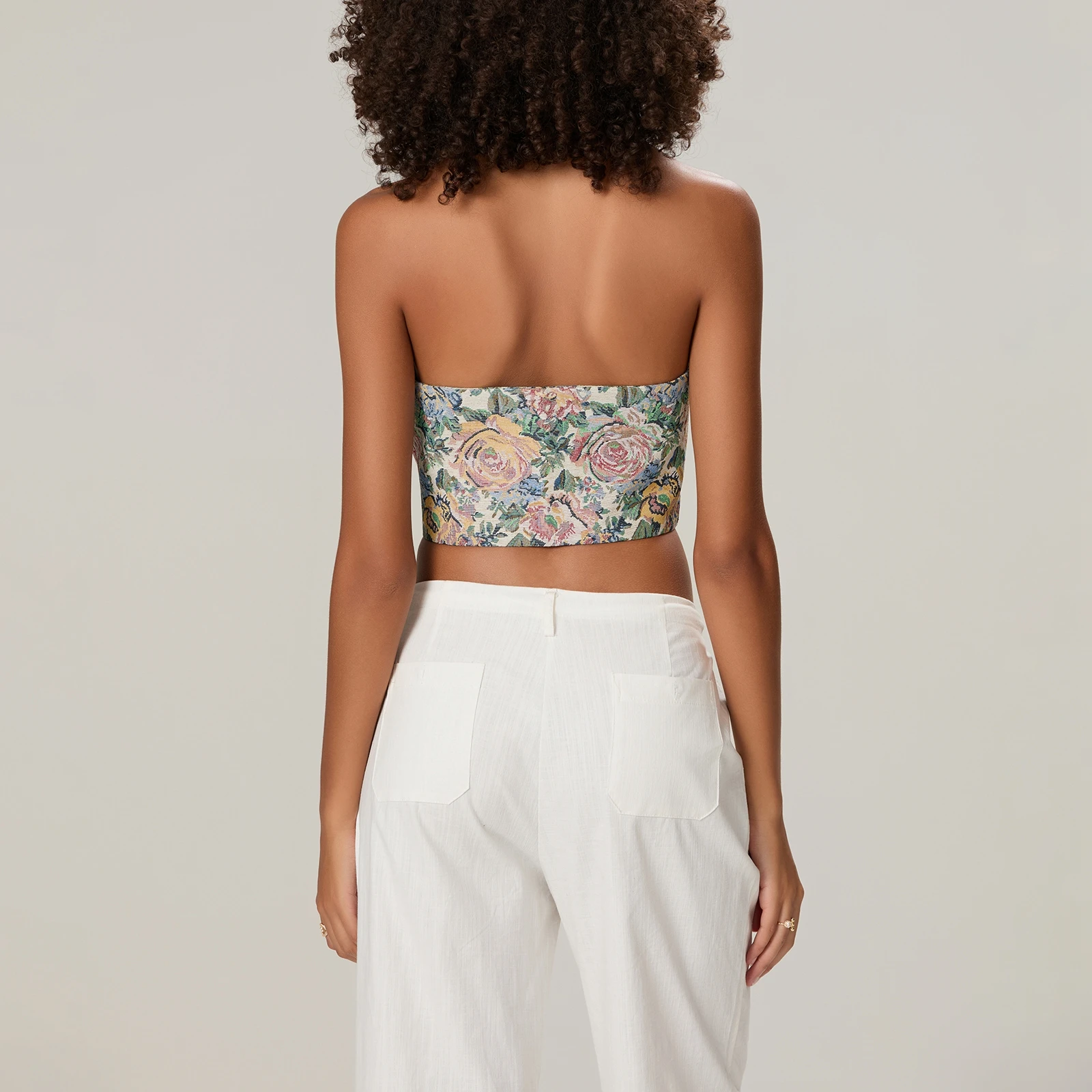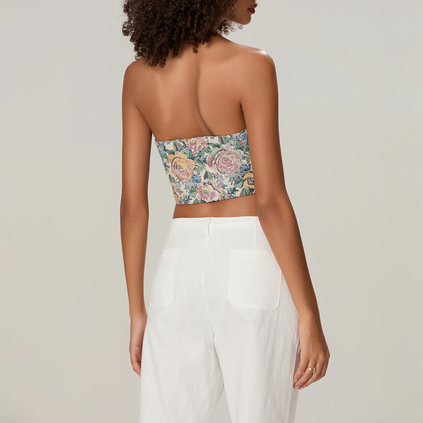 Vintage Floral Halterneck Bow Tied Front Deep V Crop Top