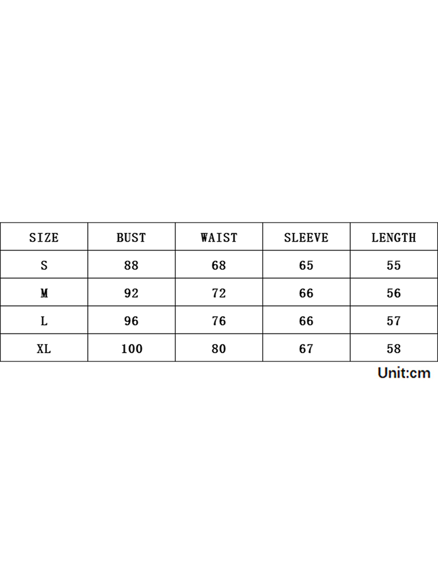 S Length: 55 / 21.65 Bust: 88 / 34.65 Waist: 68 / 26.77 Sleeve: 65 / 25.59
