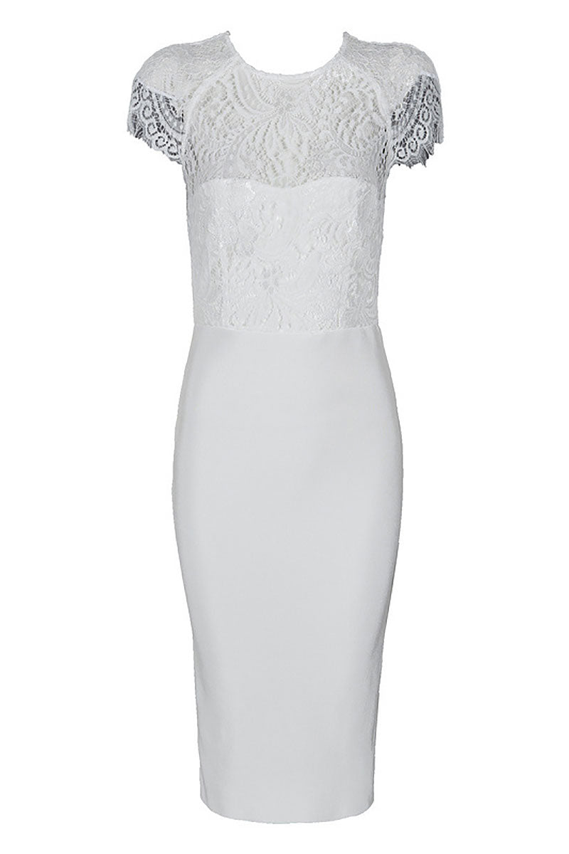 White Cap Sleeves Lace Bodycon Dress For Prom.