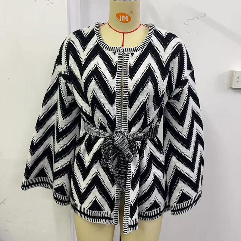 Fashionpara Elegant V-neck Striped Knit Cardigan for Women