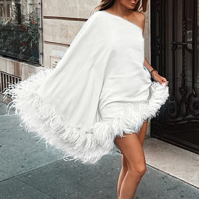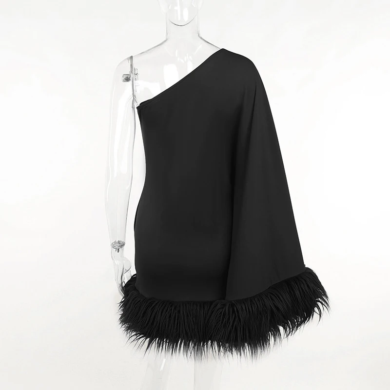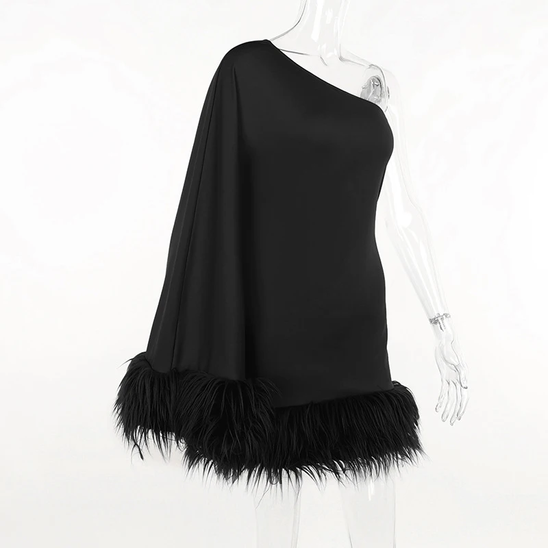 Chic One Shoulder Feather Hem Dress for Elegant Parties